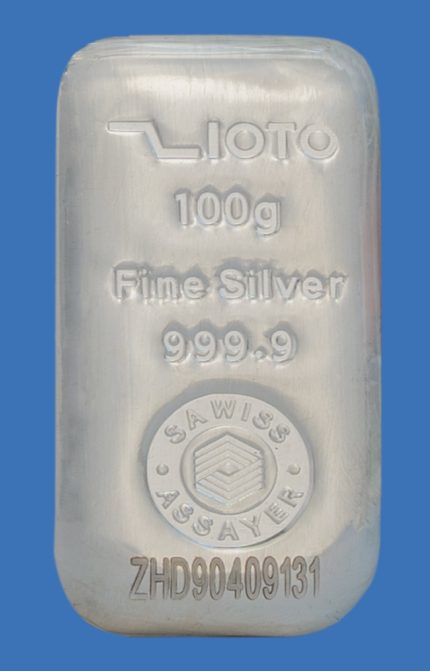 شمش نقره ۱۰۰ گرم عیار ۹۹۹/۹ زیوتو