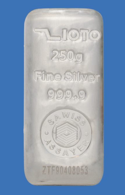 شمش نقره ۲۵۰ گرم عیار ۹۹۹/۹ زیوتو