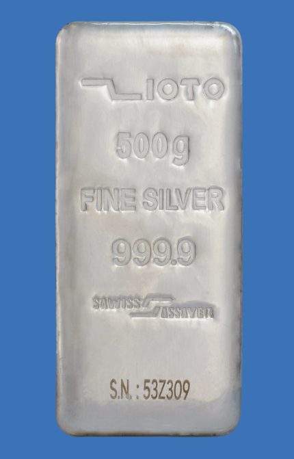شمش نقره ۵۰۰ گرم عیار ۹۹۹/۹ زیوتو