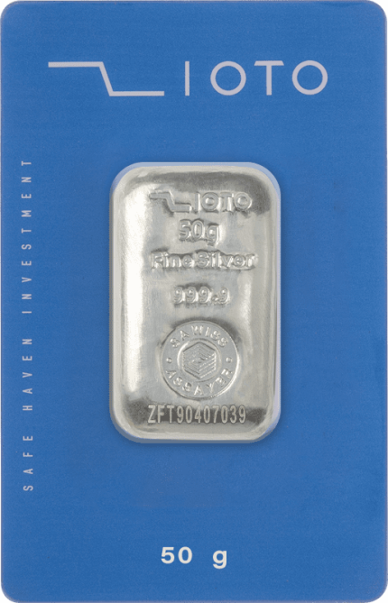 شمش نقره ۵۰ گرم عیار ۹۹۹/۹ زیوتو