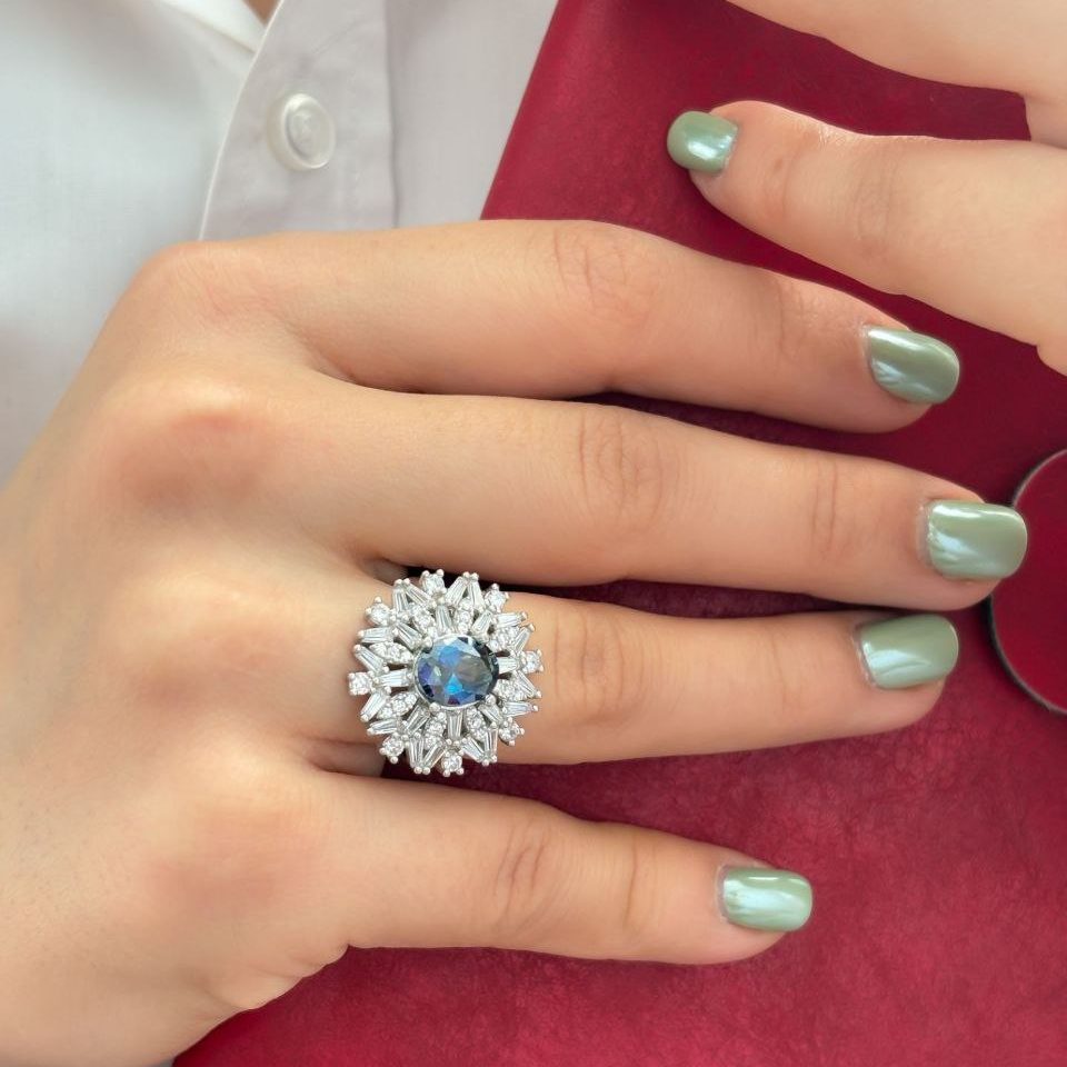 انگشتر نقره جواهری هفت رنگ
