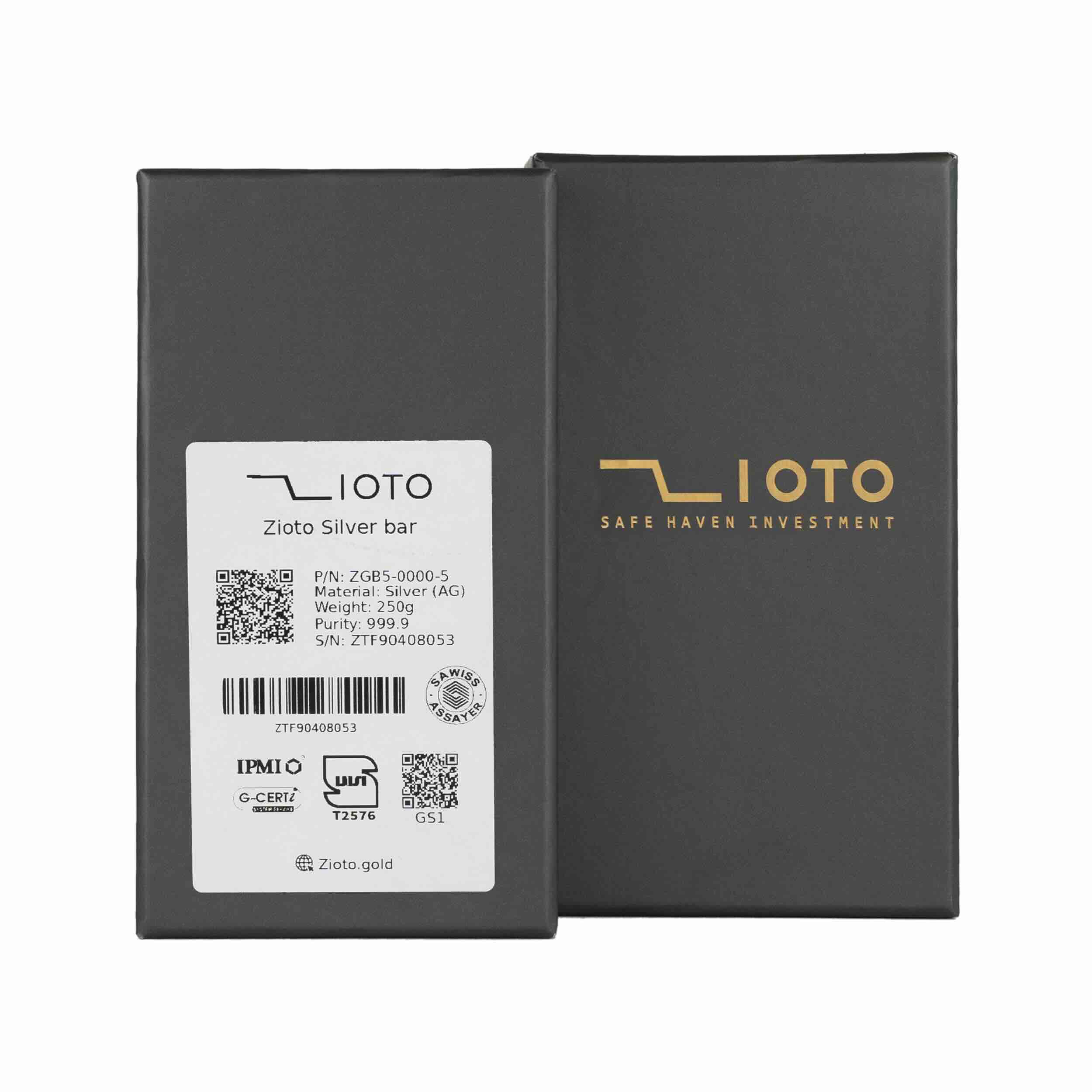 شمش نقره ۲۵۰ گرم عیار ۹۹۹/۹ زیوتو