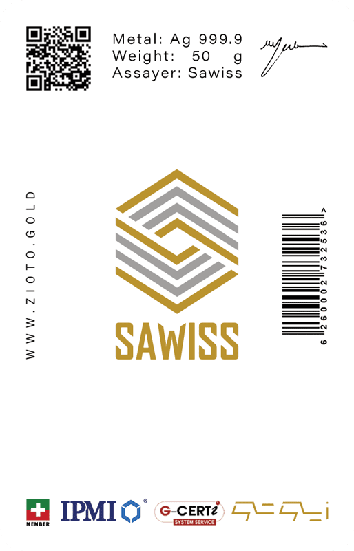 شمش نقره ۵۰ گرم عیار ۹۹۹/۹ زیوتو